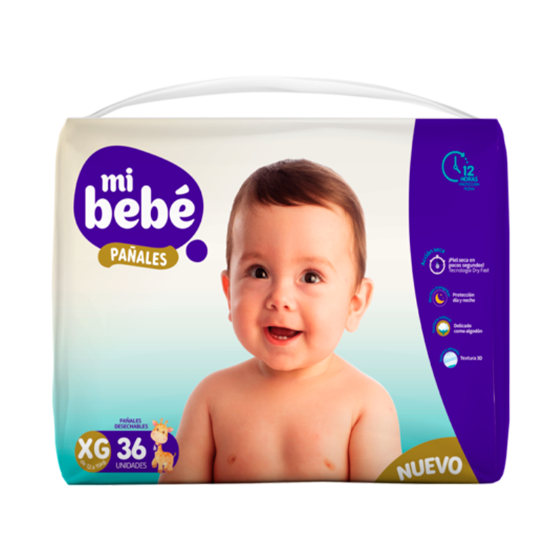 Pañales Mi Bebe talla XG de 12-15 kg x 36 unidades. *imagen referencial*