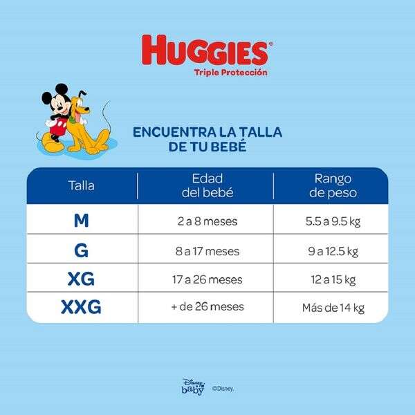 Pañales Huggies Triple Protección talla G de 9 a 12.5 kg x 32 unidades.