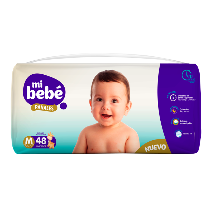 Pañales Mi Bebe talla M de 5.5-9 kg x 48 unidades. *imagen referencial