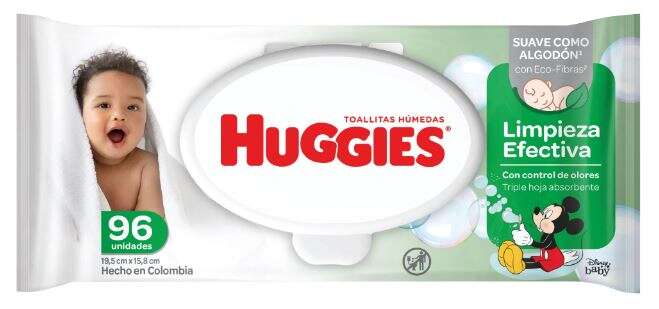 Toallitas húmedas Huggies limpieza efectiva, triple hoja absorvente con ecofibras. 96 Unidades Wipes *imagen referencial
